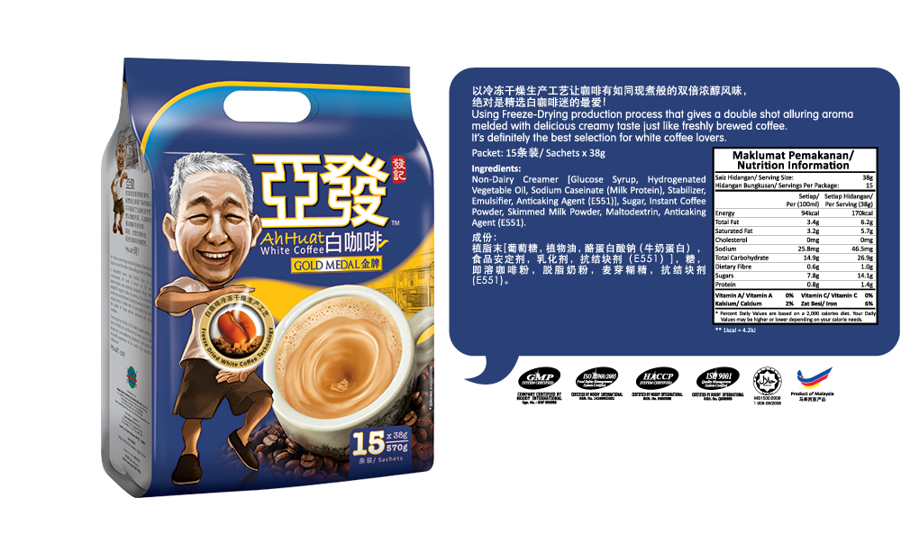 Using Freeze-Drying production process that gives a double shot alluring aroma melded with delicious creamy taste just like freshly brewed coffee.